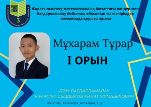 * Ахметжан Абылайхан, Найман Әмір («Қолданбалы математика» секциясы, жетекшісі Қалдыбаева А.С.);