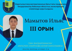 * Акжигитова Камила («Шет тілі» секциясы, жетекшісі Сағындықова А.Р.).