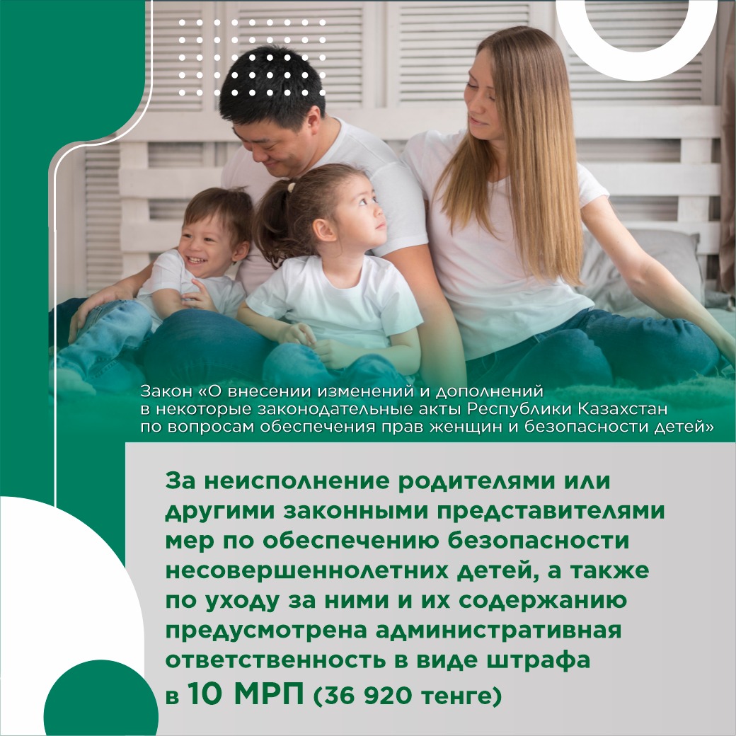 Президент Қасым-Жомарт Тоқаев «Қазақстан Республикасының кейбір заңнамалық актілеріне әйелдердің құқықтары мен балалардың қауіпсіздігін қамтамасыз ету мәселелері бойынша өзгертулер мен толықтырулар енгізу туралы» және «Қазақстан Республикасы Әкімшілік құқық бұзушылық туралы кодексіне әйелдердің құқықтары мен балалардың қауіпсіздігін қамтамасыз ету мәселелері бойынша өзгерістер мен толықтырулар енгізу туралы» Қазақстан Республикасының заңдарына қол қойды.